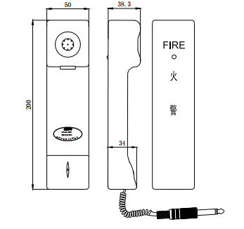 手提式電話分機(jī)為:200mm×50mm×38.3mm
